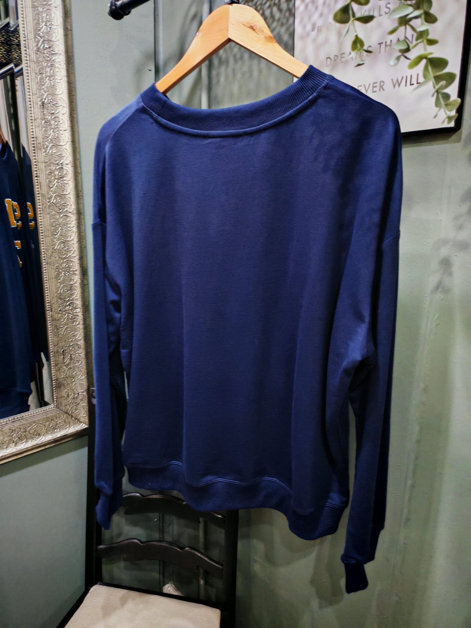 Navy logo sweatshirt. drop shoulder oversized fit.