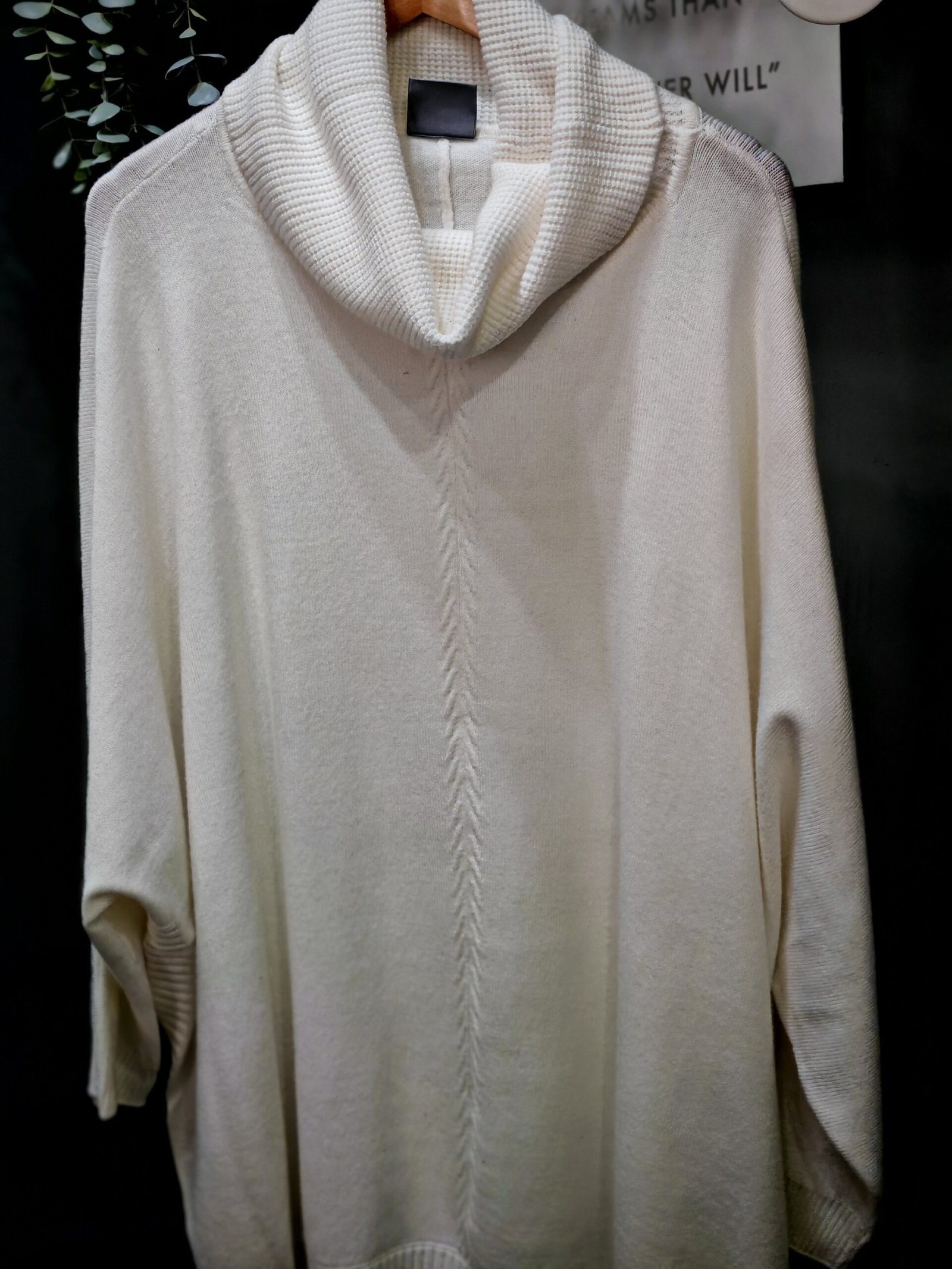 Oversized cowl neck, raglan sleeve sweater in winter white