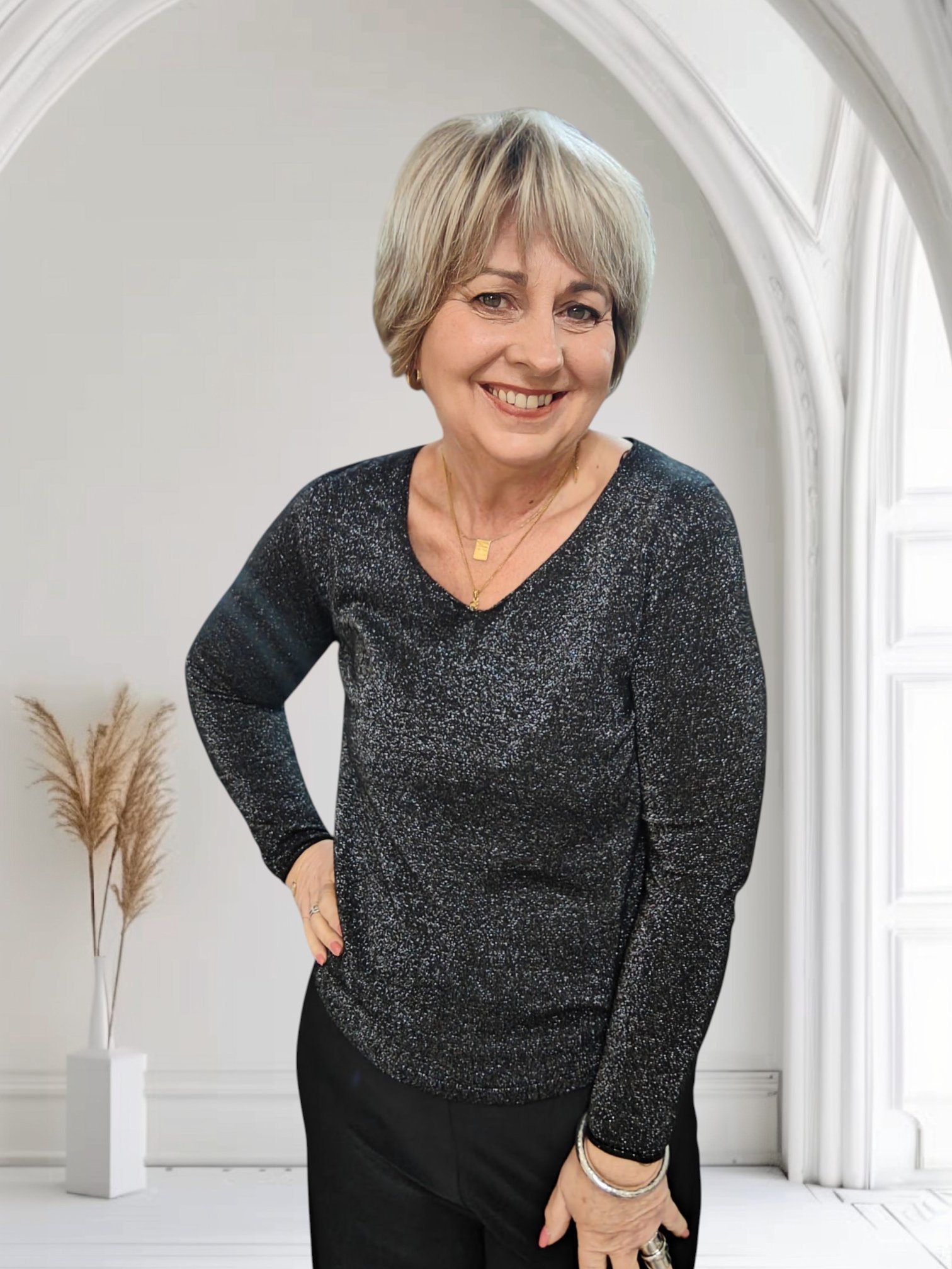 Dreams super soft (no scratch here!) V neck sweater. add some simple sparkle to your wardrobe!